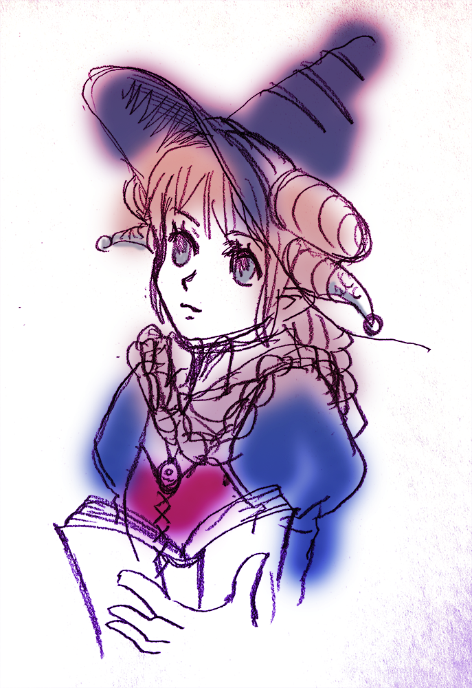 | +能力値+ | 【筋】08(-1) 【敏】13(+1) 【耐】10(+0) 【知】20(+5) →本読んで22 【判】14(+2) 【魅】14(+2)→16 AL:CG、HP:12→43 |